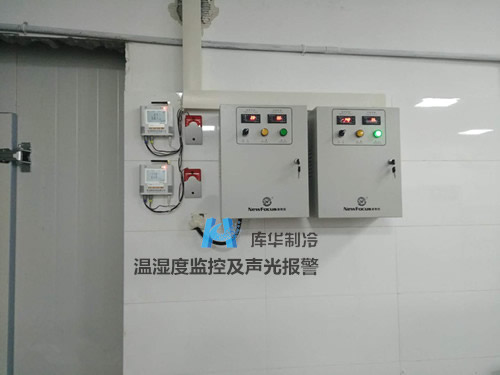 4、根據客戶要對庫房溫度進行全方位監控和異常報警的需求,庫華工程師在雙溫冷庫的電氣系統設備配置上,選用高精準度的溫濕度記錄儀及聲光報警裝置,這樣庫房管理人員可以隨時監控庫房內的溫度。